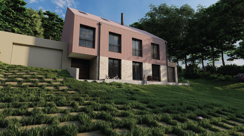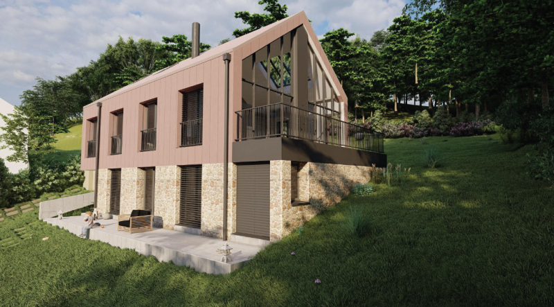 Création d'un maison familial pour 5 personnes dans la forêt, avec un espace de vie commune large.